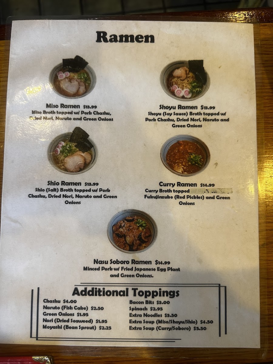Zushi Sushi and Ramen Menu
