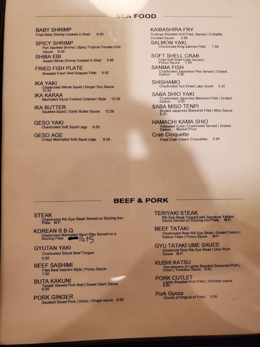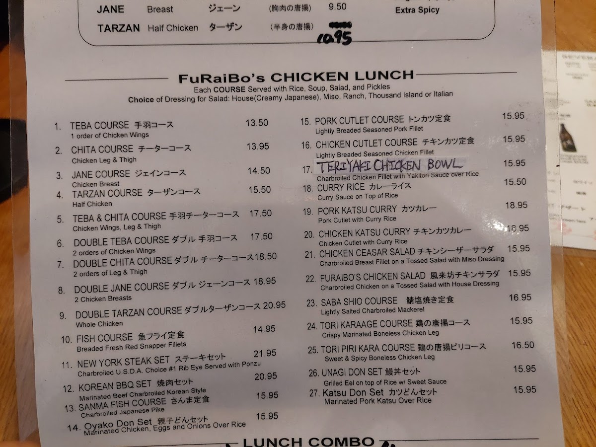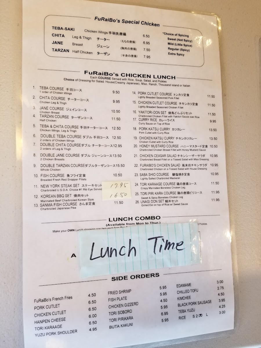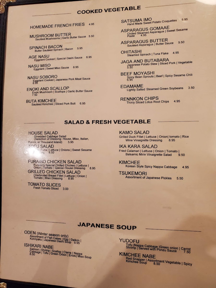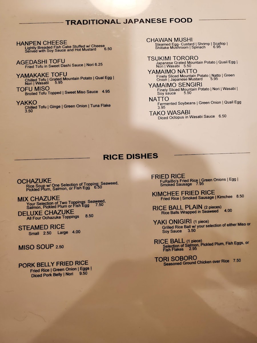 Furaibo Japanese Restaurant Menu